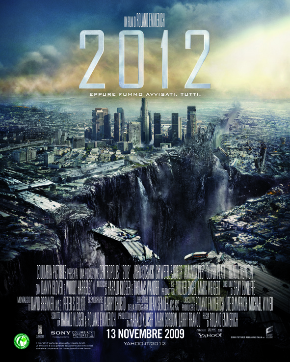 Il 13 novembre uscirà nelle nostre sale 2012, il nuovo disaster movie di Roland Emmerich, con Jon Cusack, Amanda Peet, Danny Glover, Thandie Newton, Olvier Platt, Chiwetel Ejiofro, Woody Harrelson, Jimi Mistry, Thomas McCarthy e George Segal.