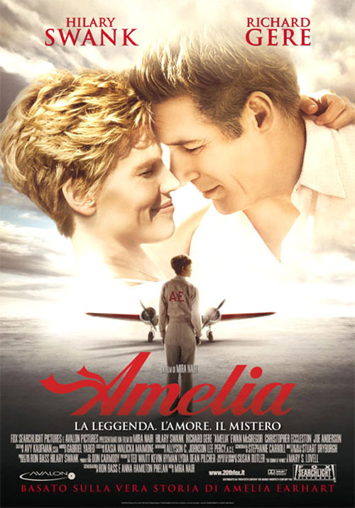 Amelia (biopic, di Mira Nair, con Hilary Swank, Richard Gere, Ewan McGregor, Christopher Eccleston, Joe Anderson, Cherry Jones, Mia Wasikowska, Aaron Abrams, Dylan Roberts, Marina Stone): la storia di Amelia Earhart, la prima donna pilota d’aerei ad intraprendere, nell’estate del 1937, il volo in solitario intorno al mondo..Recensione in anteprima.