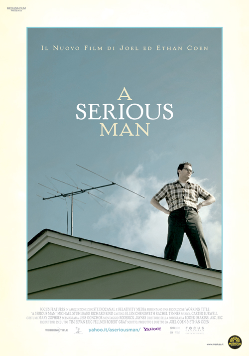 A Serious Man (commedia/drammatico, di Joel e Ethan Coen, con Michael Stuhlbarg, Richard Kind, Fred Melamed, Sari Lennick, Aaron Wolff, Jessica McManus): la famiglia di Larry Gopnik professore di fisica è un disastro: la moglie pensa di lasciarlo per il suo collega, il fratello è disoccupato, il figlio va male a scuola e la figlia ruba i soldi ai genitori.