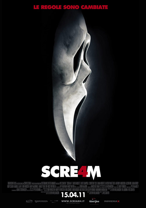 Scream 4 (horror, di Wes Craven, con David Arquette, Neve Campbell, Courteney Cox, Adam Brody, Emma Roberts, Hayden Panettiere, Kristen Bell, Rory Culkin, Nico Tortorella, Alison Brie, Marielle Jaffe, Marley Shelton, Mary McDonnell): Più di dieci anni dopo la famosa serie di omicidi, Sidney è divenuta autrice di un manuale di auto-aiuto e, come ultima tappa del tour promozionale del suo libro, torna nella sua città natale. A Woodsboro riallaccia i contatti con lo sceriffo Linus e sua moglie Gale, e anche con la zia Kate e la giovane cugina Jill, che frequenta il liceo locale. Con il ritorno di Sidney a casa, tornano anche gli omicidi di Ghostface, che pare prendere di mira il liceo frequentato da Jill.