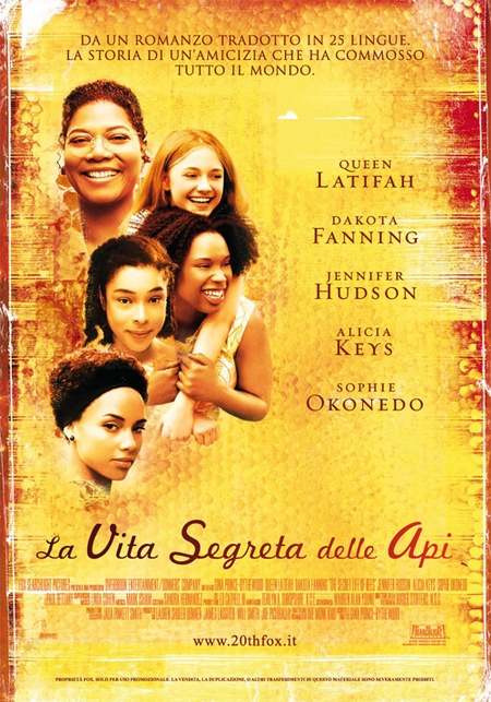 La vita segreta delle api (drammatico, diretto da Gina Prince-Bythewood, con Dakota Fanning, Queen Latifah, Alicia Keys, Jennifer Hudson, Sophie Okonedo, Paul Bettany, Hilarie Burton): Nel 1964, la quattordicenne Lily fugge con la sua tata e un amica, dalla sua fattoria per scorpire la storia del passato della madre tra le cittadine del South Carolina. Qui incontra tre sorelle che vivono allevando api, che l’aiuteranno a capire il mondo.