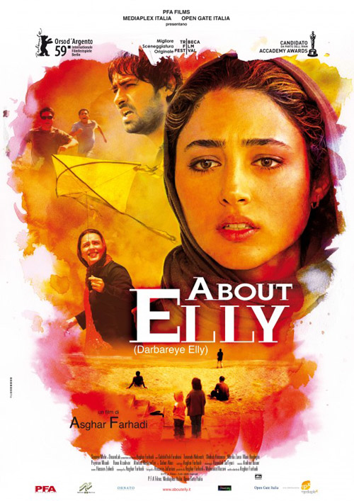 About Elly (drammatico, di Asghar Farhadi, con Golshifte Farahani, Taraneh Alidousti, Shahab Hosseini, Mani Haghighi, Merila Zarei, Peyman Moadi, Rana Azadivar, Ahmad Mehranfar, Saber Abar): Ahmad, reduce da un matrimonio infelice, dopo aver vissuto per anni in Germania, decide di tornare in Iran. Lì i suoi amici cercano di fargli conoscere Elly, un insegnante di cui tutti lodano le qualità. Quando Elly scompare si diffonde il panico nella compagnia. Che fine ha fatto Elly?