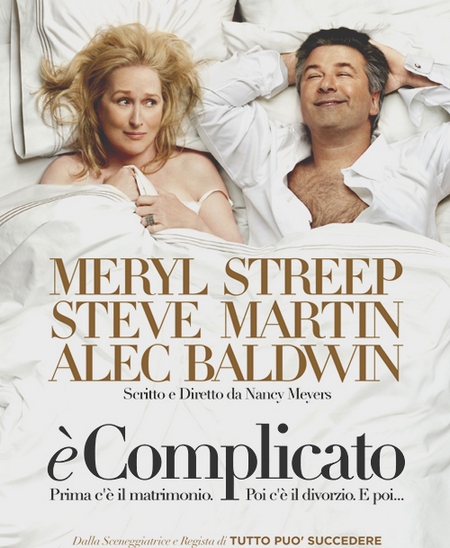 E’ complicato (commedia di Nancy Meyers, con Meryl Streep, Alec Baldwin, Steve Martin, John Krasinski, Rita Wilson, Daryl Sabara, Hunter Parrish, Lake Bell, Zoe Kazan, Mary Kay Place, James Patrick Stuart, Blanchard Ryan): Jane, madre di tre figli, divorziata, finisce a letto con il suo ex che si è appena sposato con una giovane ragazza, proprio quando nella sua vita entra Adam, un architetto che si innamora di lei. . La nostra recensione in anteprima.