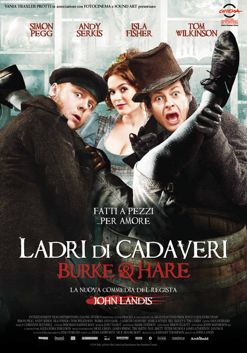 Ladri di Cadaveri – Burke and Hare (commedia thriller, di John Landis, con Tim Curry, Simon Pegg, Isla Fisher, Andy Serkis, Christopher Lee, Tom Wilkinson, Hugh Bonneville, Jenny Agutter, David Schofield): nella Edimburgo del diciannovesimo secolo, gli scapestrati Burke e Hare cercano di sbancare il lunario vendendo i cadaveri ai dottori della città per le loro lezioni di anatomia …