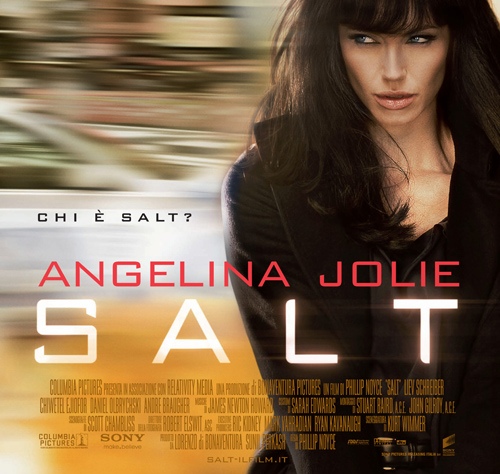 Salt (film thriller, di Phillip Noyce, con Angelina Jolie, Chiwetel Ejiofor, Liev Schreiber, Yara Shahidi, Zoe Lister Jones, Victor Slezak, Gaius Charles, Daniel Olbrychski, Cassidy Hinkle, Corey Stoll, Kevin O’Donnell, Marion McCorry, James Schram, Gary Wilmes): L’agente della CIA Evelyn Salt ha giurato di servire la patria, ma un disertore l’accusa di essere una spia russa sotto mentite spoglie. Salt, mentre è in fuga, deve dimostrare di non essere una traditrice.