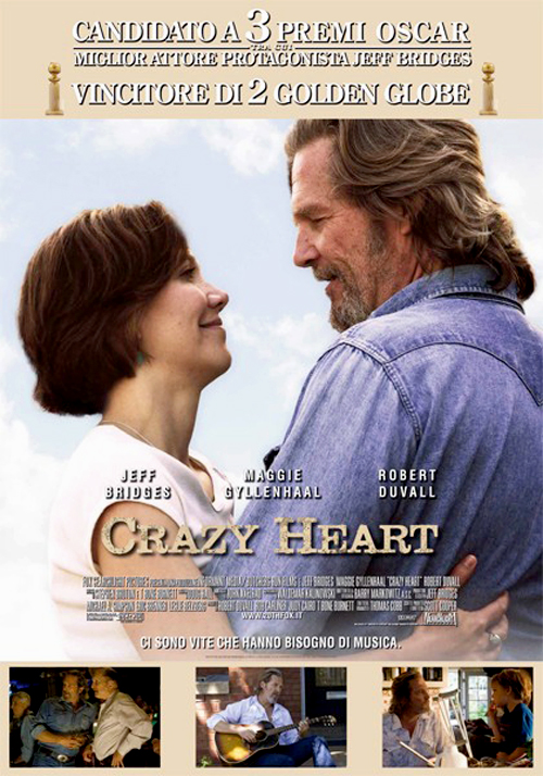 Crazy Heart (drammatico, di Scott Cooper, con Jeff Bridges, Colin Farrell, Robert Duvall, James Keane, Maggie Gyllenhaal, Tom Bower, Beth Grant, Rick Dial, Sarah Jane Morris, Luce Rains, Annie Corley): un vecchio cantante di musica country riesce a dare un senso alla propria vita che sta andando a rotoli, grazie ad una giovane giornalista.