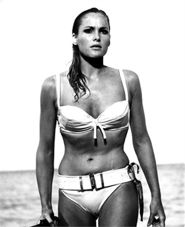 La storia inizia nel 1962, quando la prima Bond Girl Ursula Andress esce dall’acqua per entrare nell’olimpo della settima arte. Aveva un due pezzi bianco, correlato di cintura della British Army. Lo aveva disegnato lei stessa in compagnia della costumista Tessa Prendergrass, ed ancora oggi è considerato il bikini più famoso del cinema e della moda oltre che uno dei punti cardine della rivoluzione sessuale del 1960.