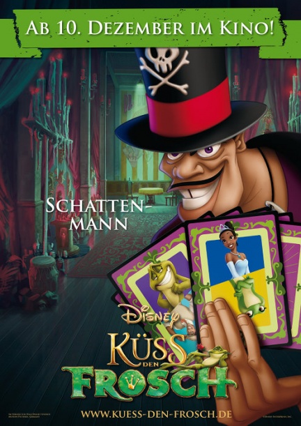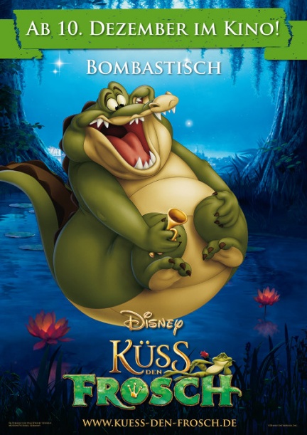Prima di lasciarvi alle splendide locandine tedesche, vi ricordo che i personaggi saranno doppiati da Karima Ammar (la principessa Tiana), Sergio Cammarierre (Dr. John), Luca Laurenti (lucciola Raymond), Luca Ward (lo stregone voodoo Dr. Facilier), Pino Insegno (l’alligatore Louis).