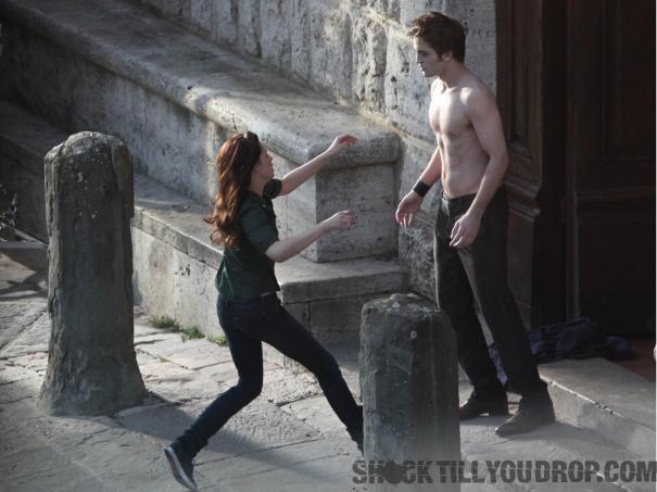 Se notate sul corpo di Robert Pattinson dei puntini neri e vi chiedete se è malato o a qualche problema, niente paura: i puntini non sono nei o sfoghi, ma segni che saranno usati in sede di post produzione per aggiungere il bagliore alla pelle di Edward.