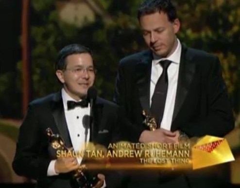 3.01. Entra Justin Timberlake con Mila Kunis. Parlano della storia della categoria miglior film d’animazione. Annunciano il miglior corto d’animazione. Il vincitore è The Lost Thing di Shaun Tan e Andrew Ruhemann. I due vincono alla prima nomination. Ringraziamenti di rito per loro. Uno dei due annuncia al mondo di amare la propria moglie.