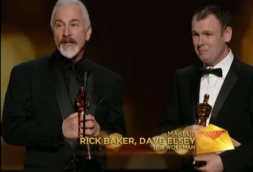 4.02. Entra tra gli applausi Kate Blanchett. Argomento. Maker Up. L’oscar va a Rick Baker and Dave Elsey per The Wolfman. Per Rick Baker è la seconda vittoria su cinque nomination, per Dave Elsey è la prima vittoria su due nomination.