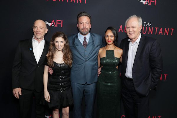 J.K. Simmons, Anna Kendrick, Ben Affleck, Cynthia Addai-Robinson and John Lithgow seen at the Los Angeles World Premiere of Warner Bros. Pictures’ “The Accountant” to benefit the American Film Institute at the TCL Chinese Theater on Monday, Oct. 10, 2016, in Los Angeles. (Photo by Eric Charbonneau/Invision for Warner Bros./AP Images)