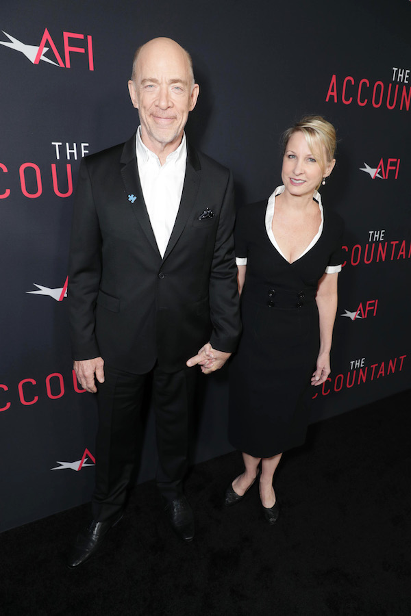 J.K. Simmons and Michelle Schumacher seen at the Los Angeles World Premiere of Warner Bros. Pictures’ “The Accountant” to benefit the American Film Institute at the TCL Chinese Theater on Monday, Oct. 10, 2016, in Los Angeles. (Photo by Eric Charbonneau/Invision for Warner Bros./AP Images)