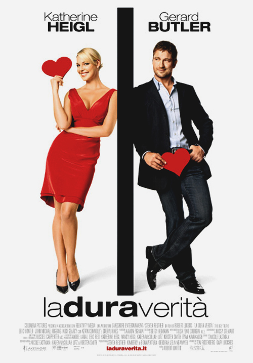 La dura verità (commedia, di Robert Luketic, con Katherine Heigl, Gerard Butler, Bree Turner, Eric Winter, Nick Searcy, Jesse D. Goins, Cheryl Hines, John Michael Higgins, Bonnie Somerville): Abby, produttrice televisiva, non riesce a far innamorare gli uomini e decide, suo malgrado, di chiedere aiuto al borioso Mike, il conduttore di uno show intitolato The Ugly Truth.