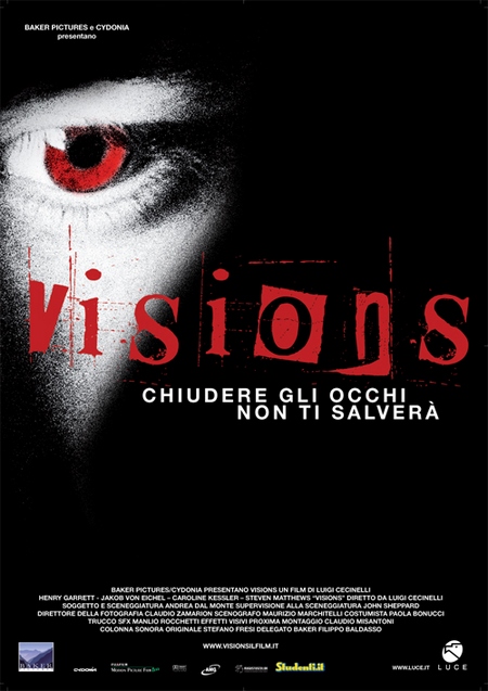 Visions (thriller, diretto da Luigi Cecinelli, con Henry Garrett, Jakob Von Eichel, Caroline Kessler, Steven Matthews, Ralph Palka, Katie Mcgovern, Jennifer Norton, Jeffrey Jone): un serial killer di nome Ragno intrappola e uccide le sue vittime in luoghi e con modalità differenti. Un ragazzo che ha degli strani incubi, ricoverato in una clinica psichiatrica, pensa di poter aiutare il dottor Leeme a trovare il killer. La nostra recensione in anteprima.