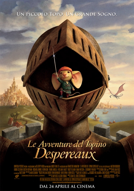 Le avventure del topino Despereaux (Animazione, diretto da Sam Fell, Robert Stevenhagen): in un paese lontano, il re mette al bando tutti i ratti del reame. Toccherà al topino Despereaux comportarsi da cavaliere e salvare il regno. RECENSIONE IN ANTEPRIMA.